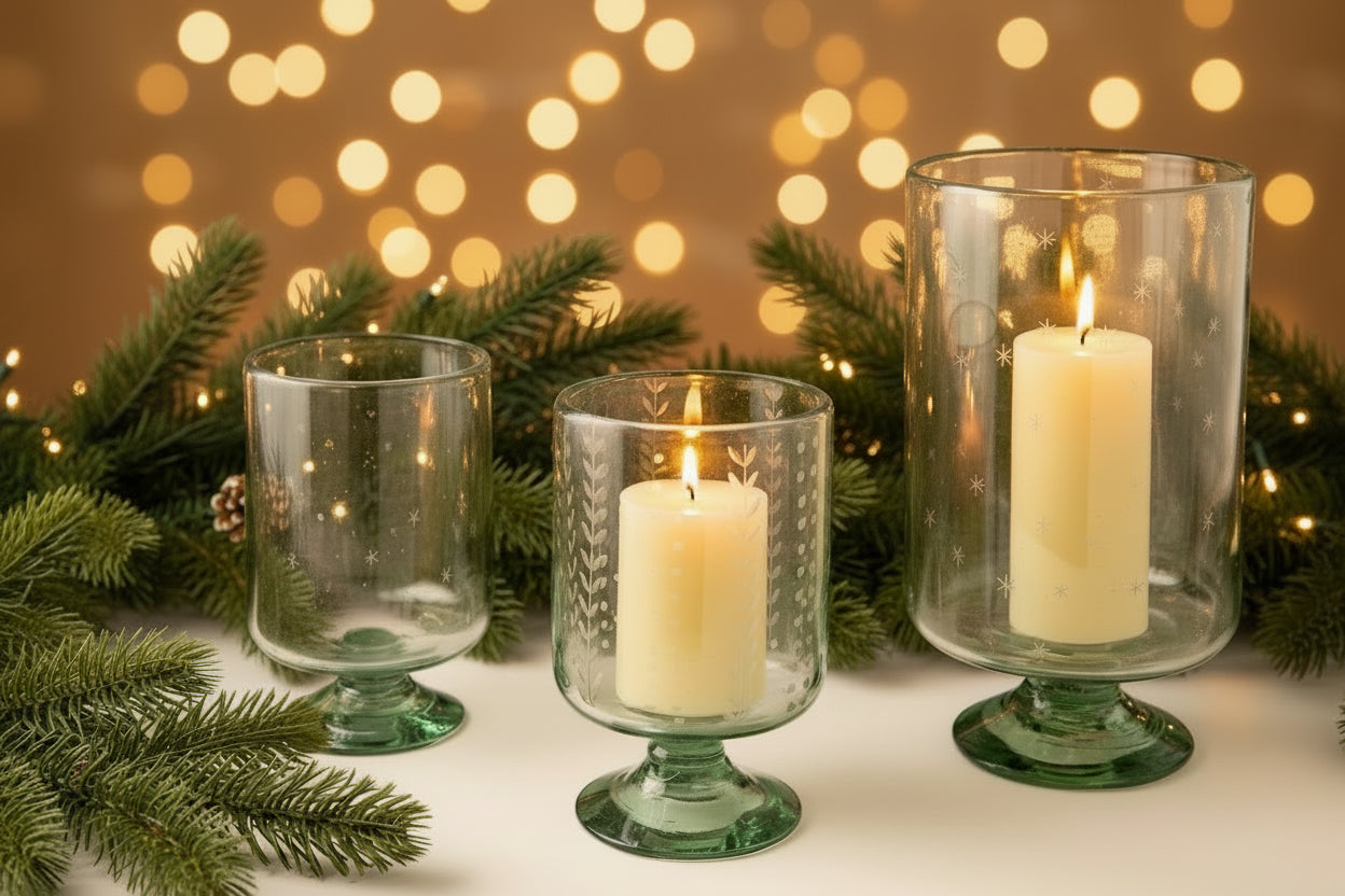 Vases brushed by hand with delicate 14k gold leaf, hurricane etching that catches each flicker of candlelight - bring radiance to the ordinary and romance to the season.