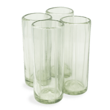 Add a touch of sophistication to your drinkware with the Clear Suit Stripe Highball Glass. Featuring sleek, hand-etched vertical stripes, this glass exudes elegance. Mouth-blown from recycled glass by artisans in San Miguel de Allende, Mexico, it's a stylish addition to any bar.