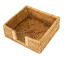 Complete your table setting with this handwoven rattan napkin holder, designed to add elegance to both casual meals and formal gatherings. Available in honey brown, white wash, or tudor black, the tight weave and natural finish bring warmth and style to any space.